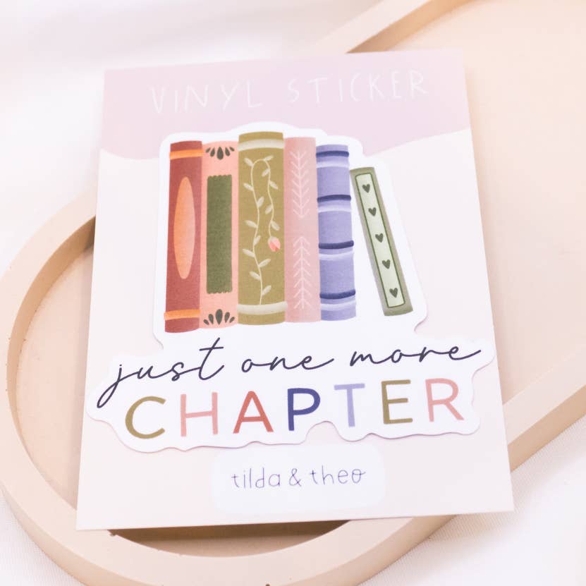 Kirjojen ystävän oma vinyylitarra One more chapter -tekstillä.